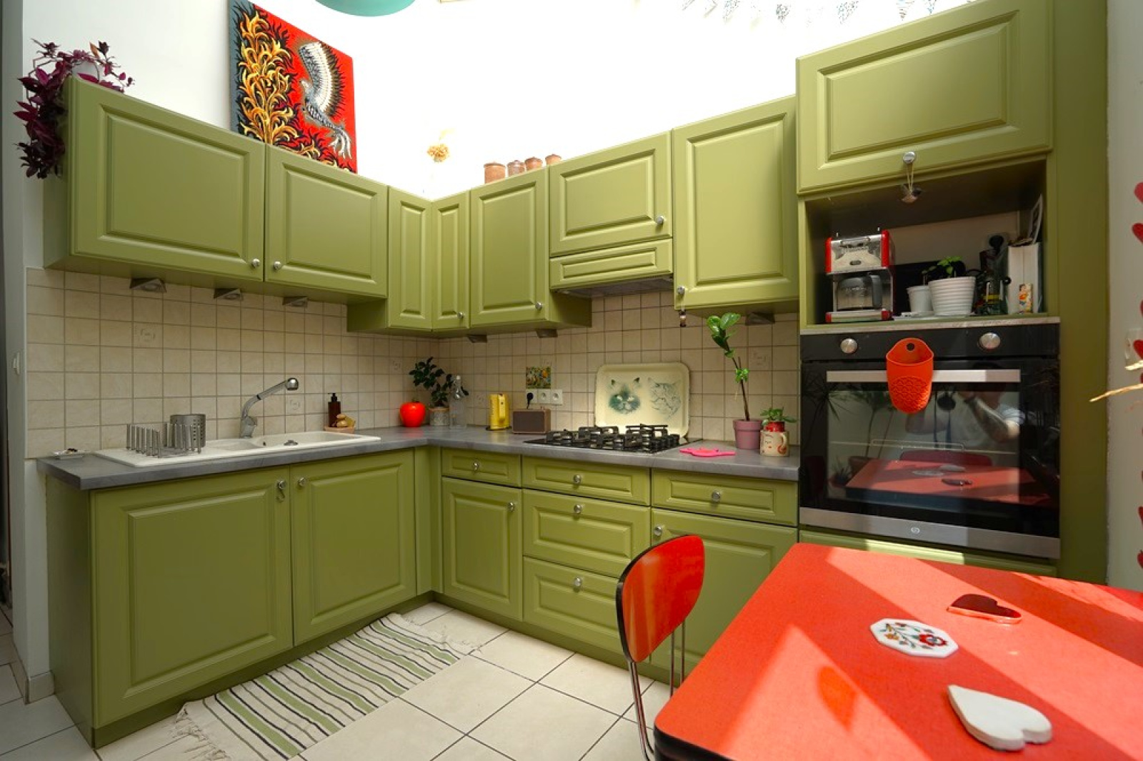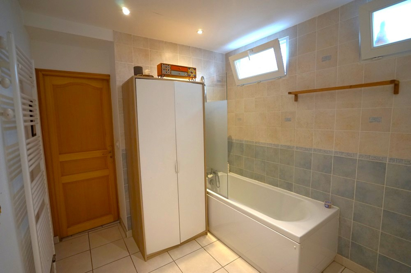 Séjour traversant carrelé. Très jolie chambre parquetée de presque 16m² avec placards anciens intégrés. Lumineuse cuisine équipée permettant d’accéder à l’extérieur. Salle de bains de bonne taille avec baignoire/douche, wc, sèche-serviettes et emplacement machine à laver.