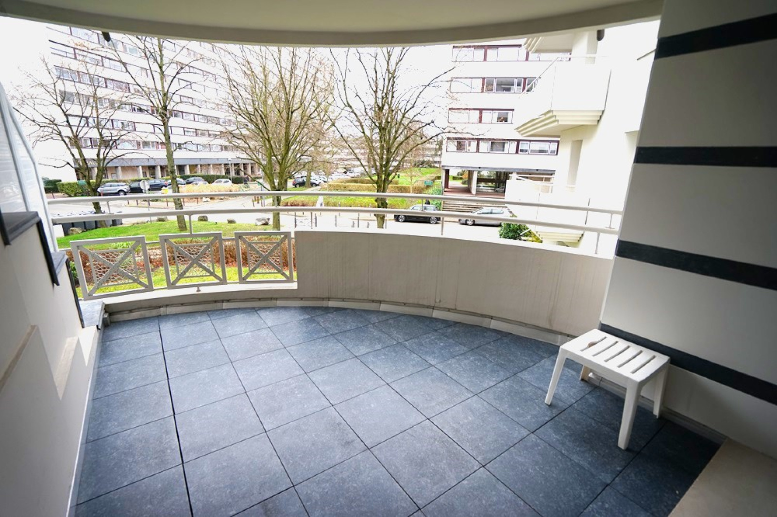 Loggia quart de lune carrelée orientée sud-est. Cave saine et grand garage au sous-sol de la résidence.