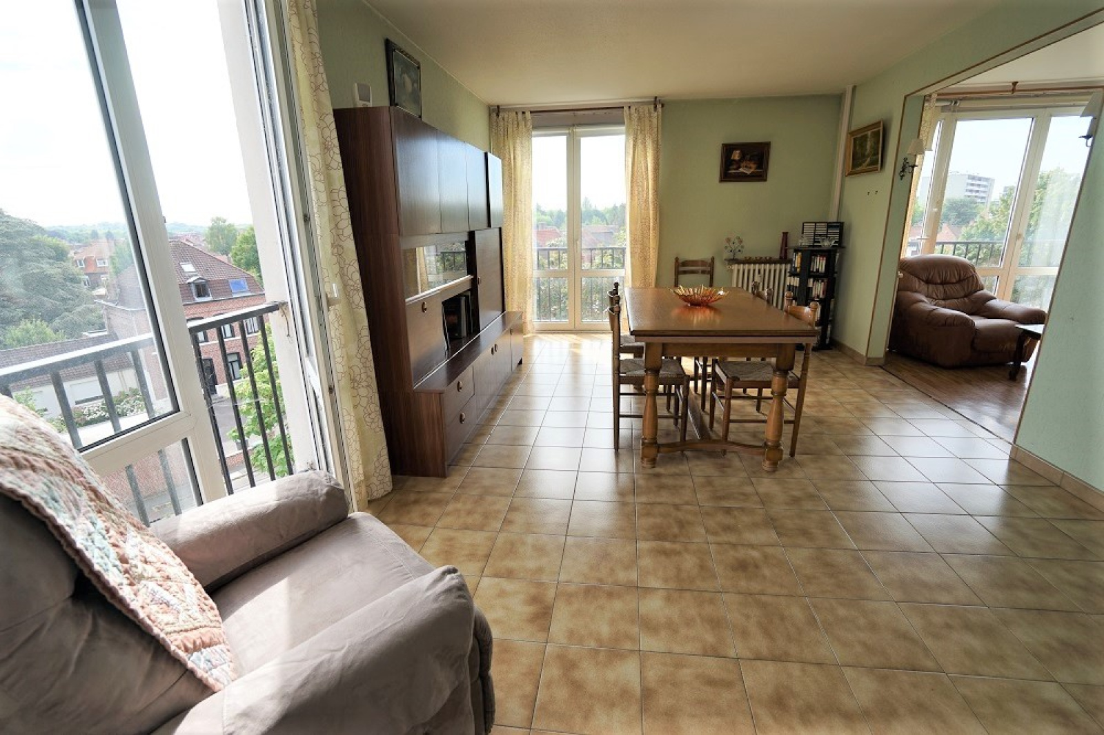 WASQUEHAL PAVE DE LILLE APPARTEMENT T3 / T4 – EXCLUSIVITE – Beaux volumes pour cet appartement baigné de lumière d’environ 86 m² habitables situé au 4è étage d’une résidence proche du tram, du centre de Wasquehal et des écoles – Vaste entrée avec placards – Cuisine équipée rustique avec espace buanderie – Spacieux salon séjour carrelé en angle avec grandes portes fenêtres – 2 chambres dont une avec grand placard /dressing - Fenêtres sur toute la largeur des pièces – Salle de douche – Wc séparé – Cave saine – Double vitrage partout – Chauffage collectif gaz avec décompteurs individuels - Appartement sain et hyper lumineux situé dans un quartier calme à proximité du tram et des commerces – Prévoir travaux - Copropriété de 36 lots – Parties communes récemment repeintes - Charges courantes annuelles d’ environ 2178 € ( chauffage, eau froide, eau chaude, entretien parties communes ) – Honoraires inclus charge acquéreur : 6 % TTC ( prix 150 000 € hors honoraires ) –