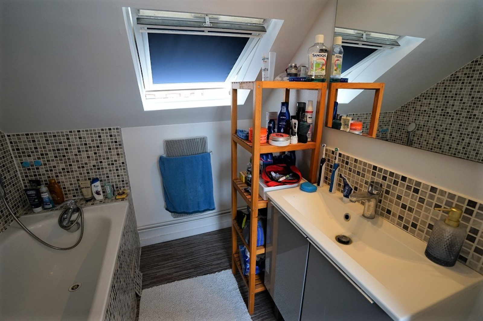 Entrée avec placards intégrés et wc séparés – Spacieuse et lumineuse pièce de vie parquetée de 25m² avec cuisine équipée ouverte et séjour – A l’étage, 2 chambres et une salle de bains avec vasque et baignoire – Double-vitrage dans l’ensemble du bien – Chauffage individuel électrique – Copropriété de 9 lots – Charges courantes annuelles d’environ 783€ (eau froide, entretien des parties communes) – Honoraires inclus charge acquéreur : 6% TTC ( prix 205 000 € hors honoraires ) – www.estime-immo.com