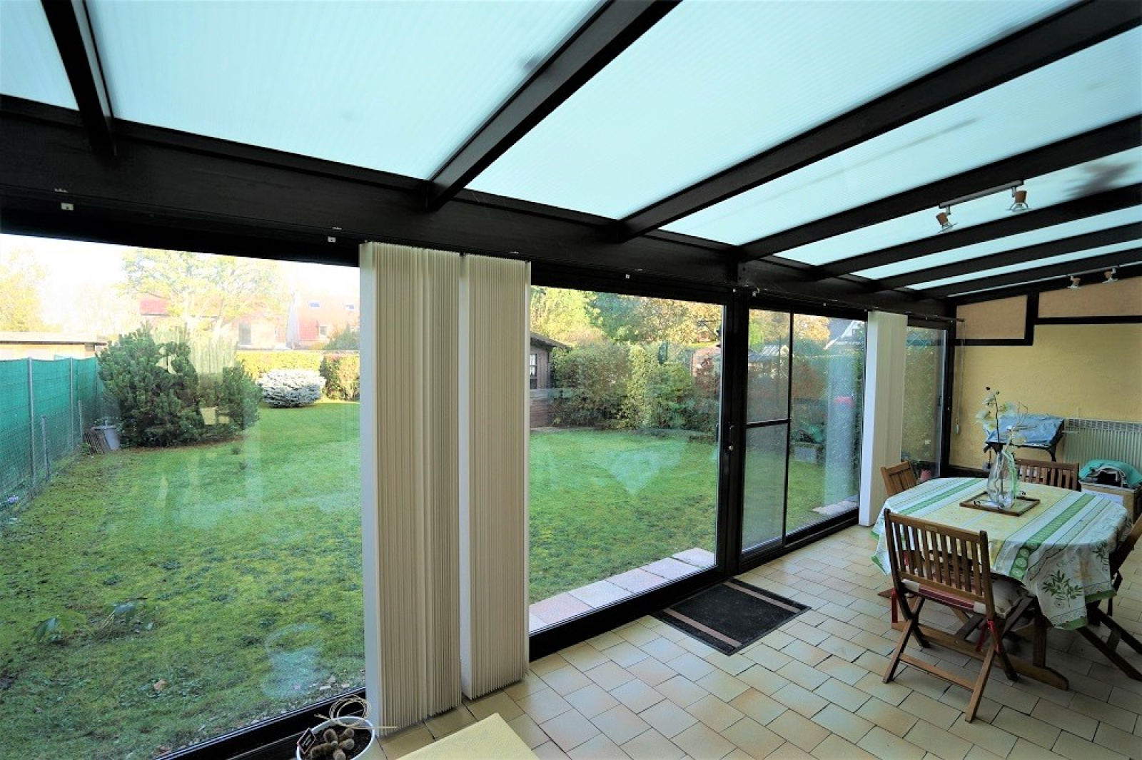 Charmant jardin bien entretenu avec son abri et peu de vis-à-vis – Garage de 25m² avec porte automatique – Chauffage au gaz (chaudière FRISQUET) – Double-vitrage avec volets roulants dans l’ensemble du bien.