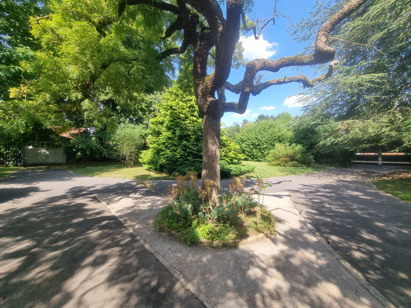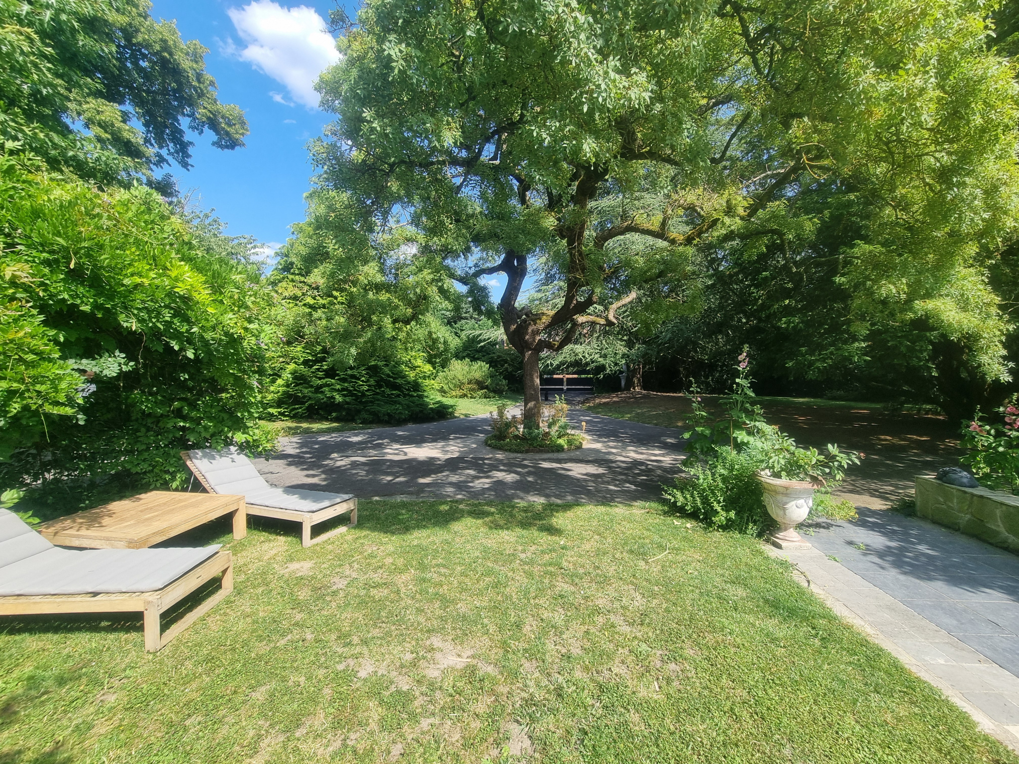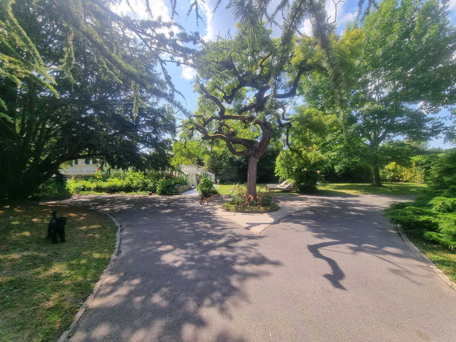 Le demi sous-sol révèle un espace confidentiel avec une chambre d'environ 17 m², une grande salle de bain comprenant une douche, une baignoire ancienne et une double vasque. De nombreux rangements et plusieurs caves vous offrent la possibilité de créer de nouveaux espaces selon vos envies (atelier, cave à vin, salle de jeux, etc.).À l'extérieur, appréciez la chic terrasse en pierre d'environ 50 m², accessible par un double escalier, qui surplombe l'ensemble du parc. Ce cadre verdoyant vous propose différents espaces pour profiter de la nature à votre manière.